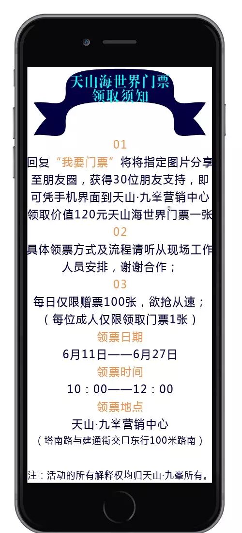 天山·九峯赠送价值120元的天山海世界门票消息一经发出,一夜之间掀起朋友圈热潮,领票消息发出后,更是引发全城抢票。
